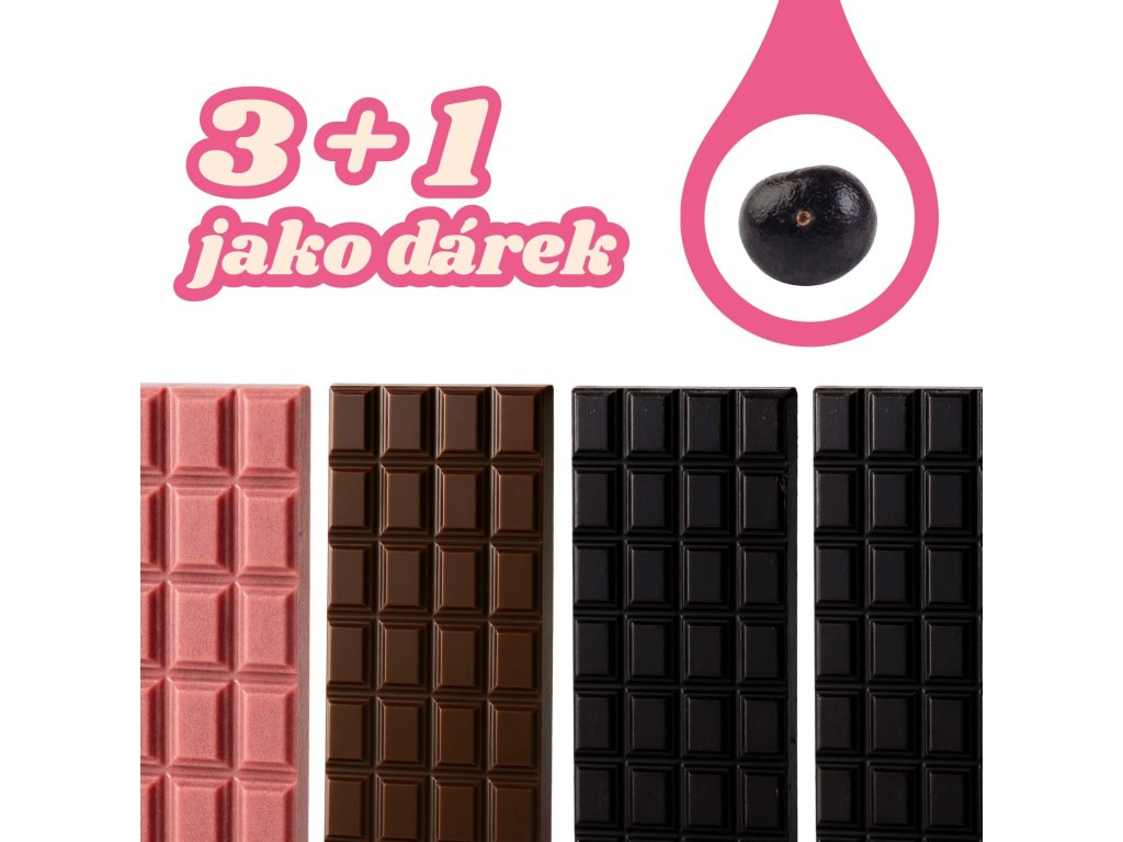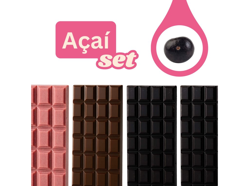 Kompletní sada funkční čokolády s açaí, kterou si vychutnáte v každé čokoládové variantě.