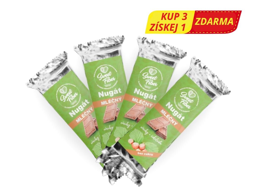 Akce 3 + 1 – mléčný lískoořechový nugát Sweet Fiber