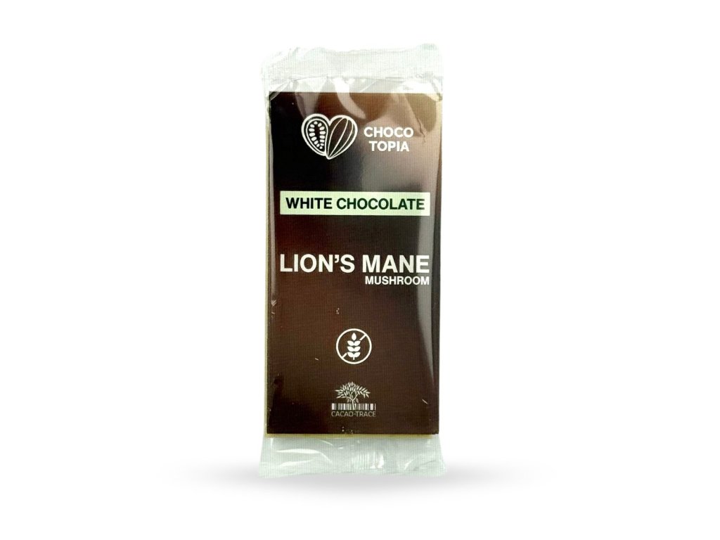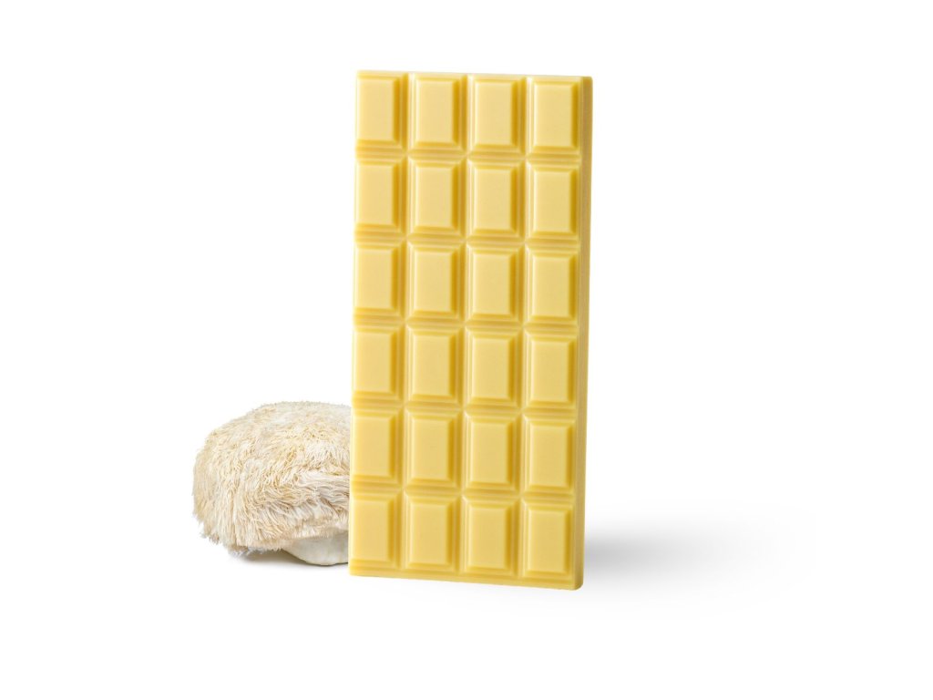 Bílá čokoláda s Lion’s Mane (Lví hříva).