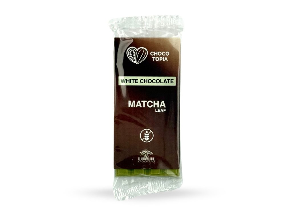 Složení: Kakaové máslo, cukr, sušené plnotučné MLÉKO, přírodní vanilkové aroma, prášek z listů matcha, emulgátor: SÓJOVÝ lecitin.