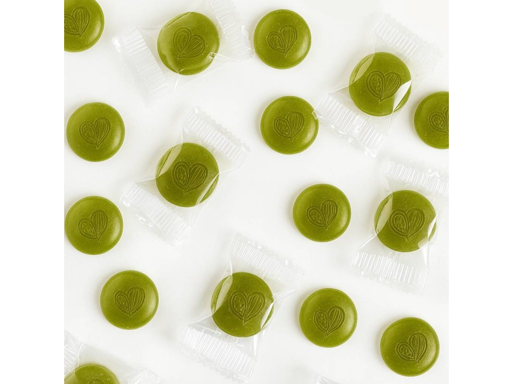 Bílá čokoláda s Matchou ve formě 30 individuálně zabalených pecek.