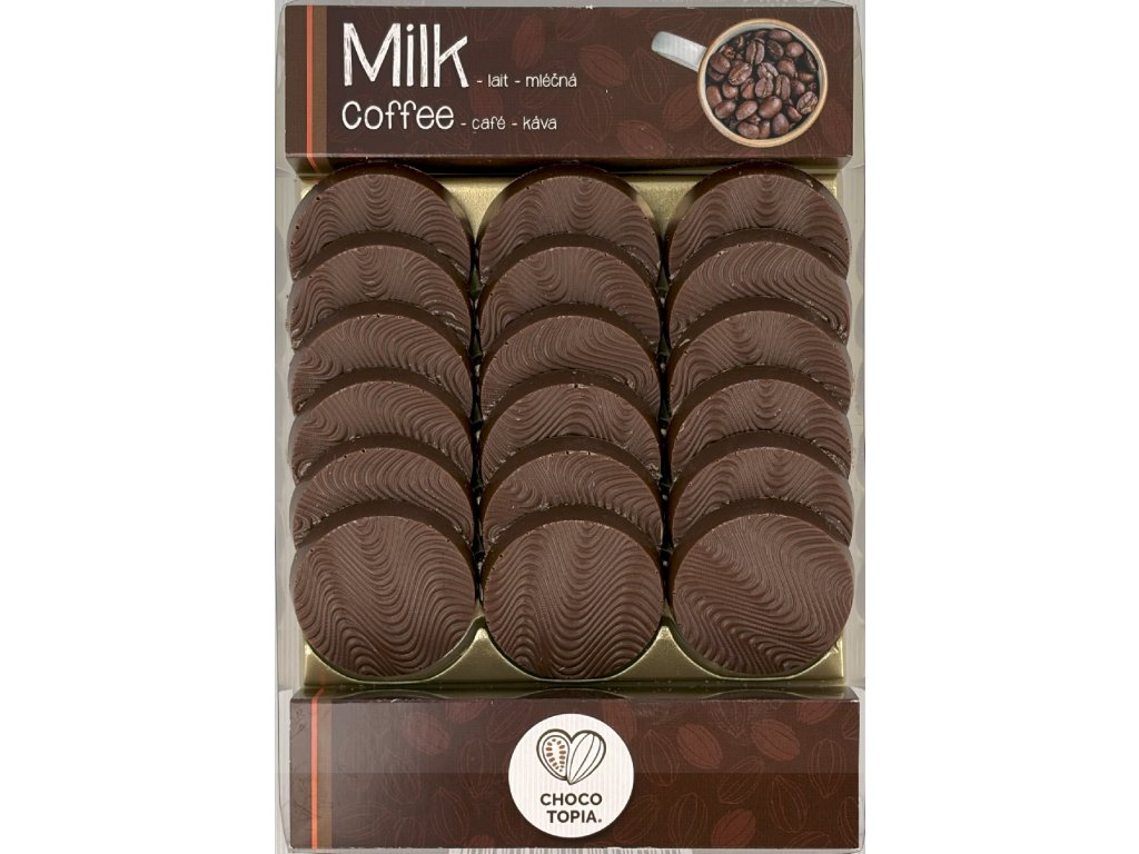 18 kousků luxusní mléčné čokolády s příchutí kávy