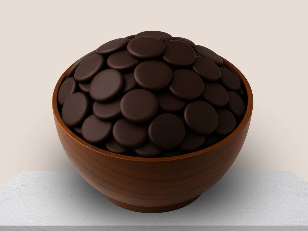 Složení: kakaová hmota, cukr, kakaové máslo, emulgátor: SÓJOVÝ lecitin, přírodní vanilkové aroma.