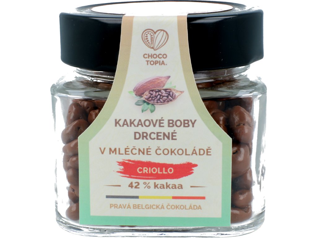 Kakaové boby Criollo drcené v mléčné Criollo čokoládě 42% 130g
