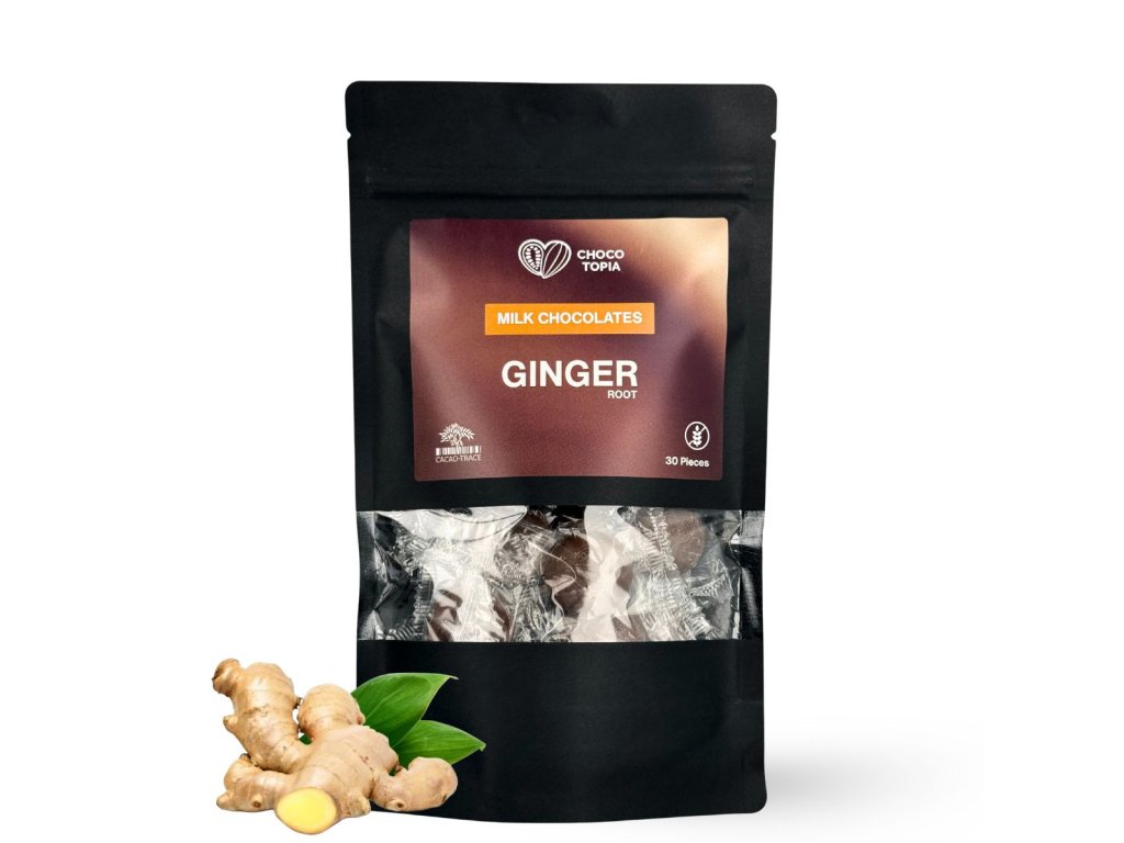 Mléčná čokoláda se Zázvorem ve formě 30 individuálně zabalených pecek.