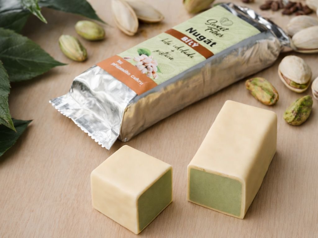 Nugát bílý s pistácií Sweet Fiber