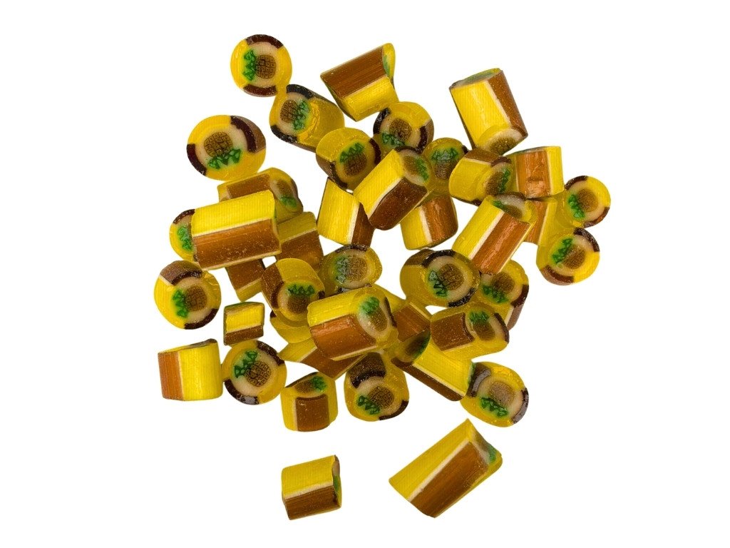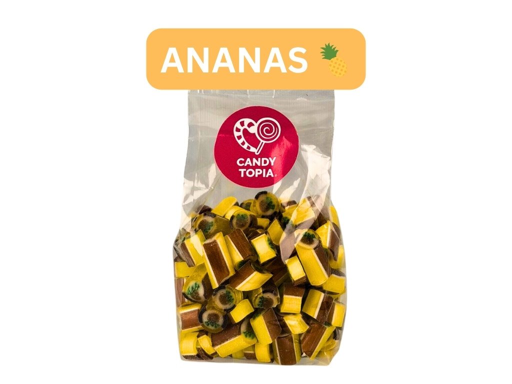 Složení: cukr, glukóza, voda, kyselina citrónová, barviva [(E102, E122 - mohou nepříznivě ovlivňovat činnost a pozornost dětí), E133], ananas aromata. Může obsahovat stopy orechů.