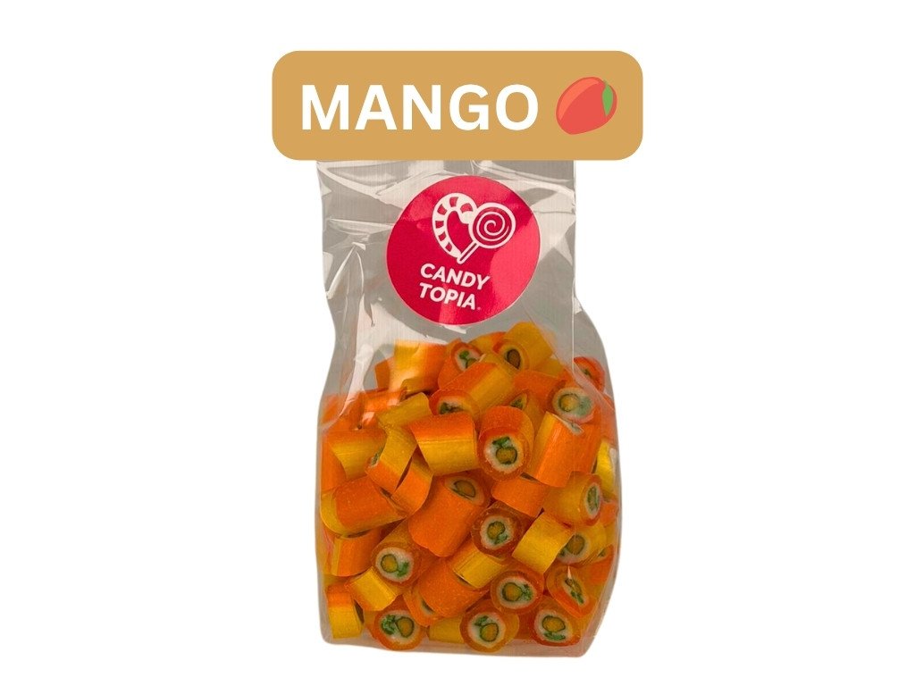 Složení: cukr, glukóza, voda, kyselina citrónová, barviva [(E102, E110 - mohou nepříznivě ovlivňovat činnost a pozornost dětí), E133], aroma (mango). Může obsahovat stopy orechů.