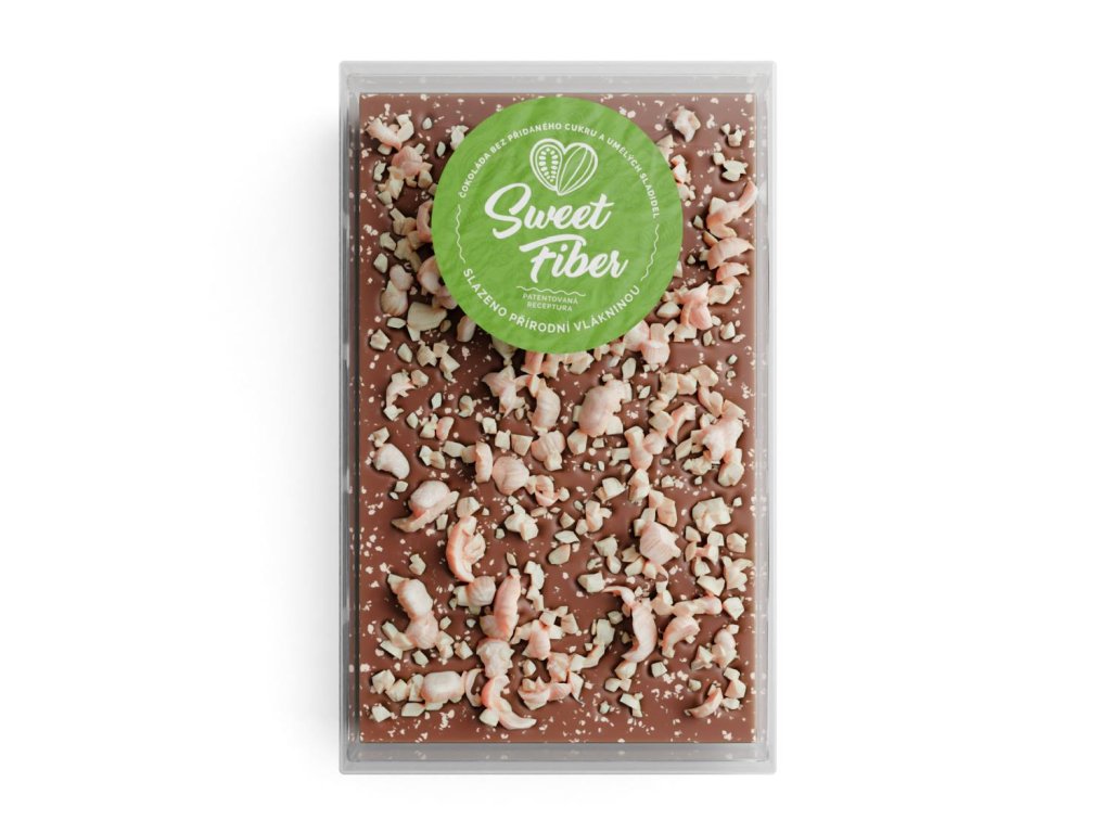 Představujeme Vám jedinečnou čokoládu Sweet Fiber! Vyvinuli jsme vlastní patentovanou čokoládu beze stopy přidaného cukru a současně zachovali její sladkou chuť pomocí přírodní vlákniny. Konečně můžete do svého zdravého jídelníčku s čistým svědomím zařadit i čokoládu.