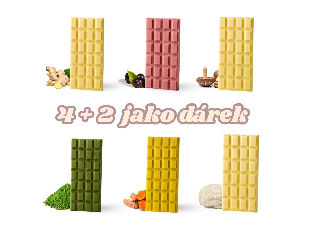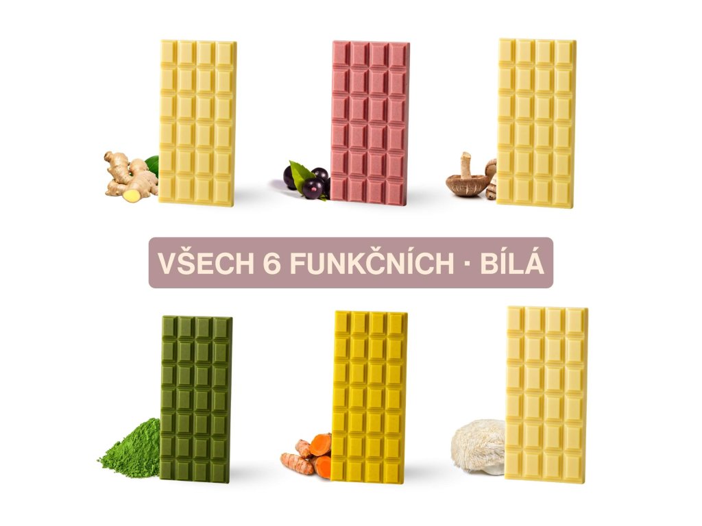 Všech 6 funkčních · bílá čokoláda (6 × 25 g)